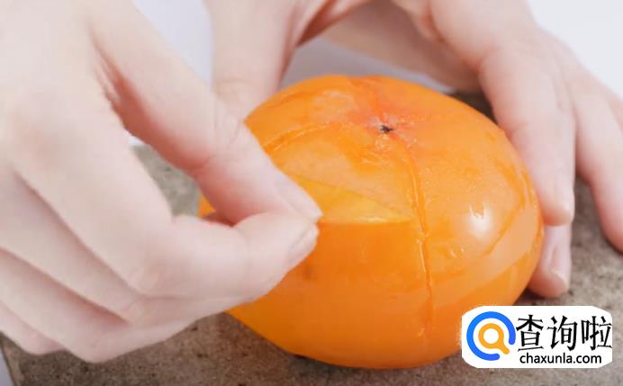 冷冻完成后取出来,浸泡在温水中,再剥去柿子的表皮。