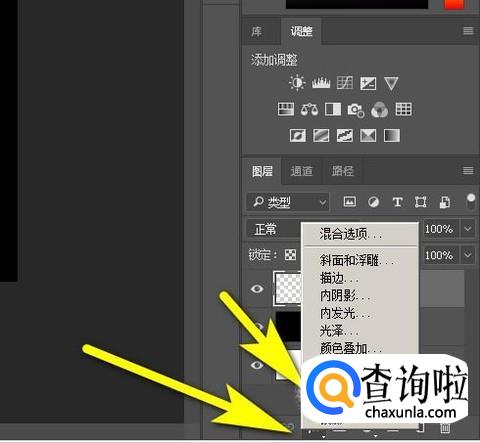 鼠标移到图层面板这里, 如图所示,点击添加图层样式的按钮,弹出菜单再点:外发光