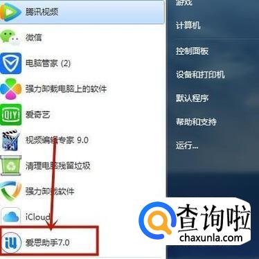 首先我们要在电脑开始菜单上找到“爱思助手”并点击它,如下图所示。