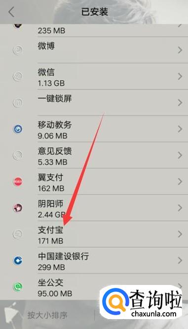 进入之后,找到支付宝,点击并进入,如图所示。
