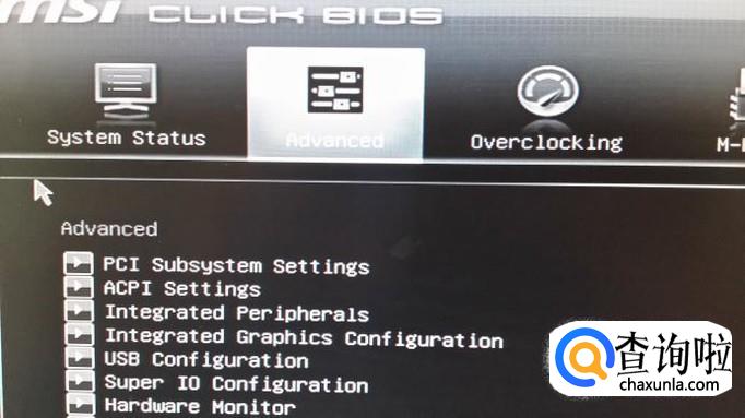 进入BIOS后,点击界面上方的“Advavced”菜单。