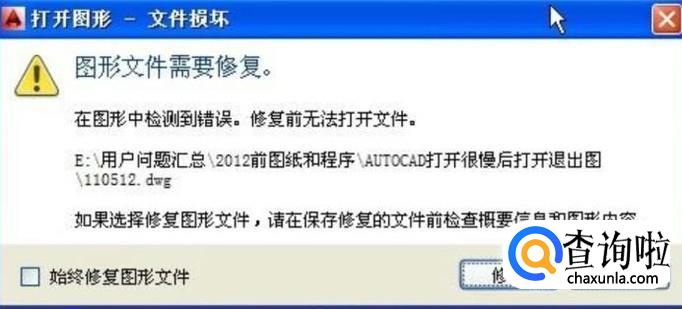 电脑在一次意外所电之后,打开cad 图多文件时提示“cad 图形文件无