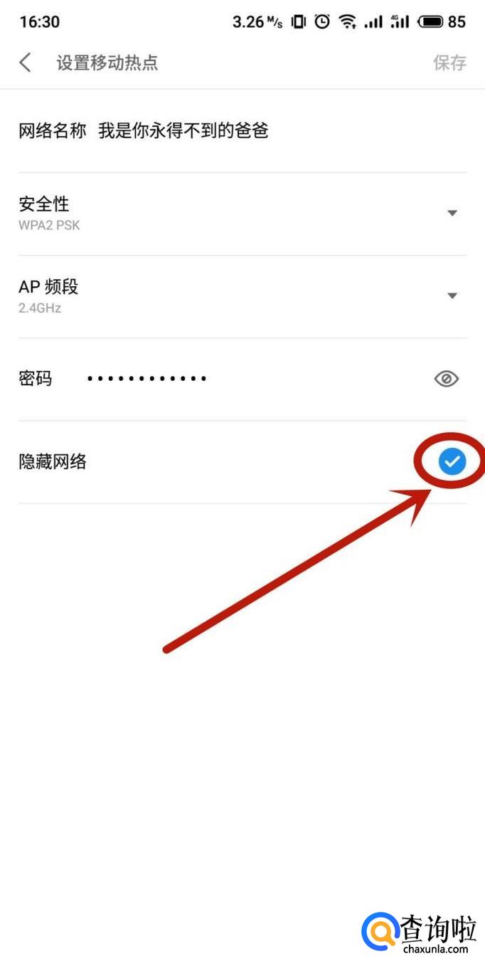 进入之后,将隐藏网络旁边的对勾取消即可。