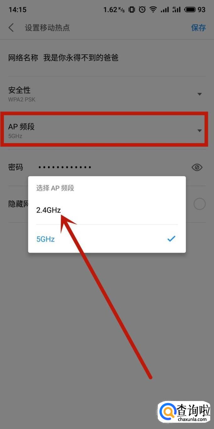 进入之后,点击“AP频段”,将其修改为“2.4GHz”即可。