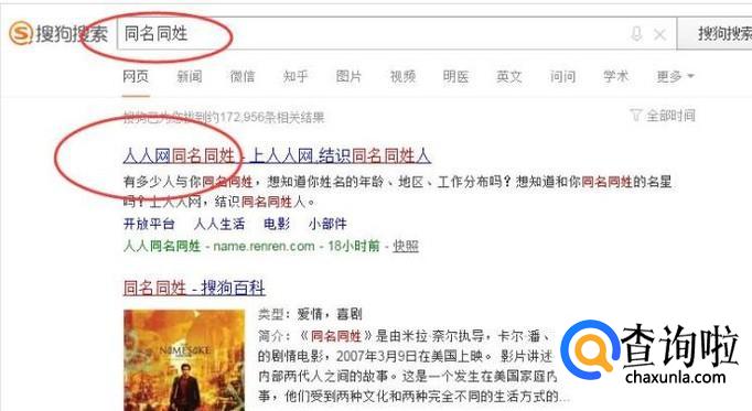 在浏览器中搜索【同名同姓】,点击相关链接,如下图所示: