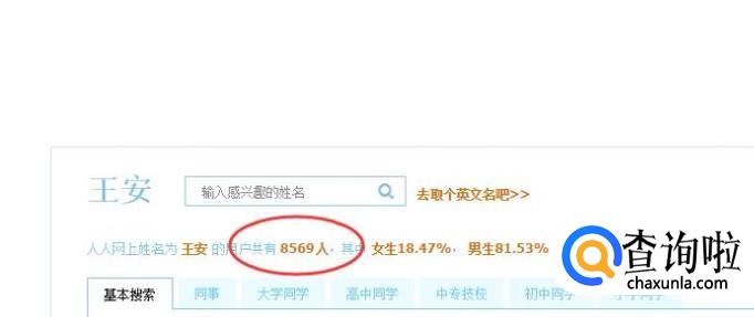 可以看到有8569人叫王安,如下图所示: