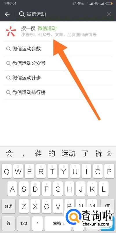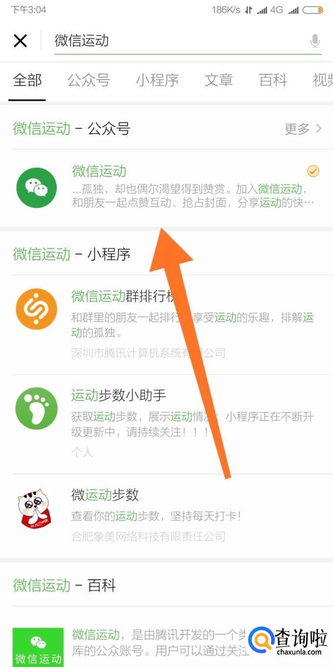 然后搜索“微信运动”公众号,再点击进入微信运动公众号。