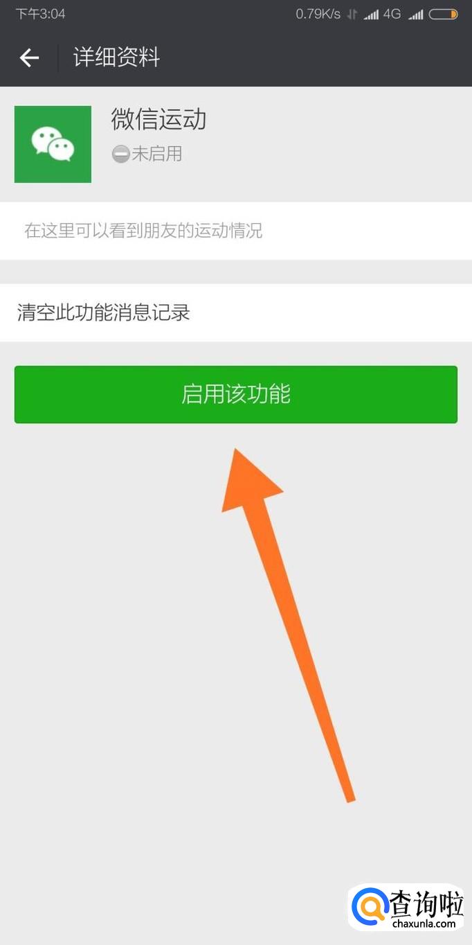 进入公众号后,点击“启用该功能”即可启用微信运动功能。
