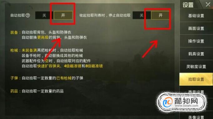接着,我们将拾取设置中,将显示界面物品的开关全部打开,如图所示。