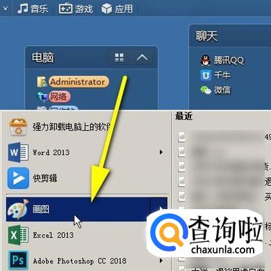 这时,会弹出一列表;从列表中找到并点击:画图;打开画图工具的操作个界面。