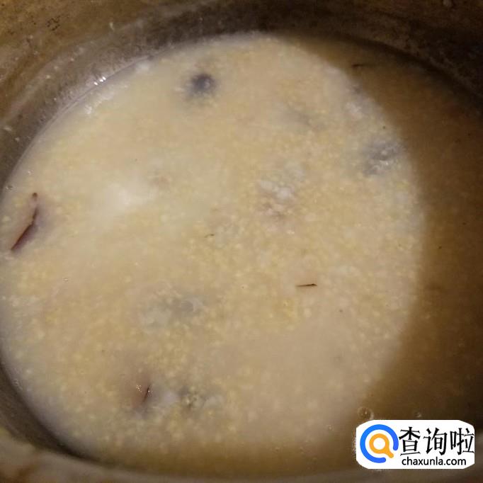 锅中加水烧开,放入小米,用勺子沿着锅边滑动,以免糊锅。