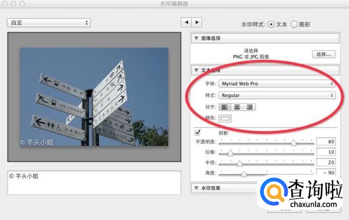 红圈处是水印的文字编辑框,可在此编辑输入你的水印内容。