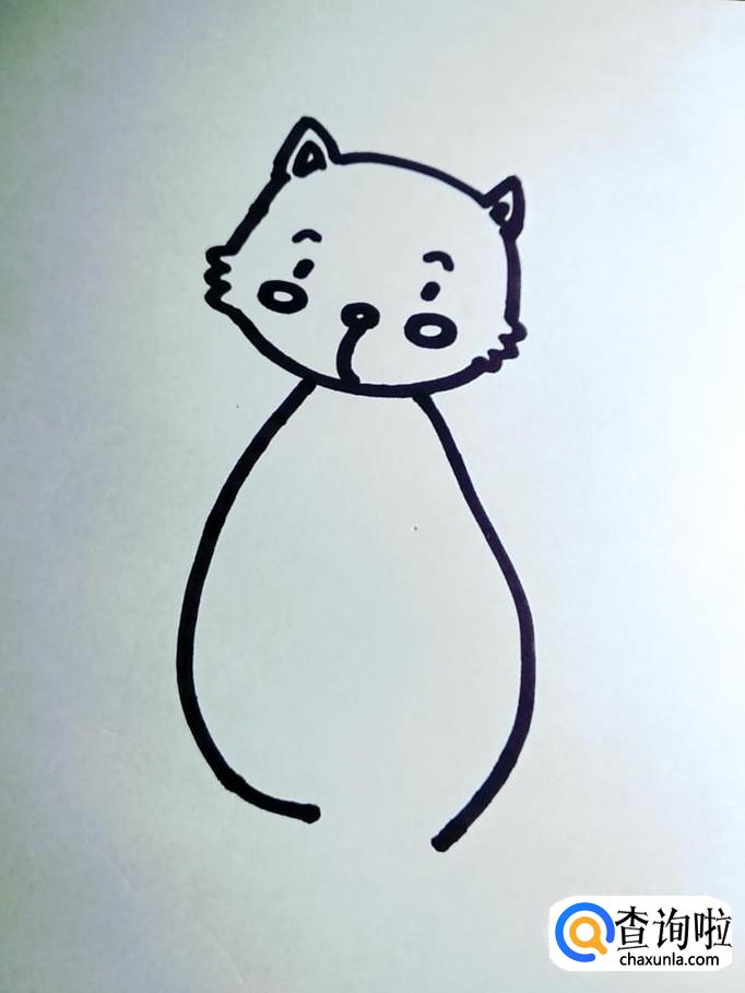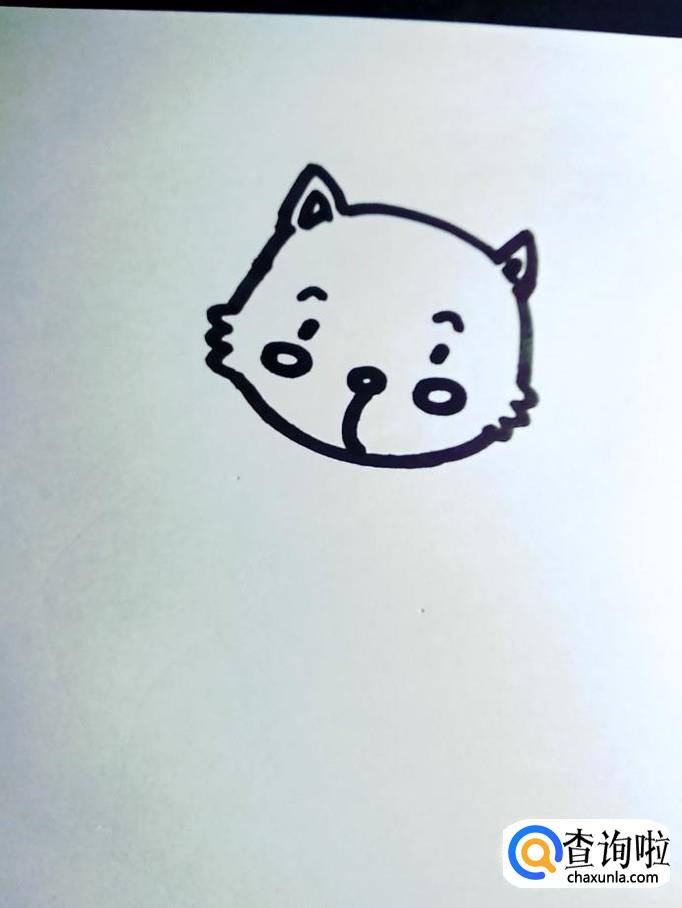 在松鼠的头部轮廓线内画出松鼠的五官。五官的位置及比例直接影响松鼠的神态。眼睛,鼻子,嘴巴都集中在头的中下部,眼距要适中。