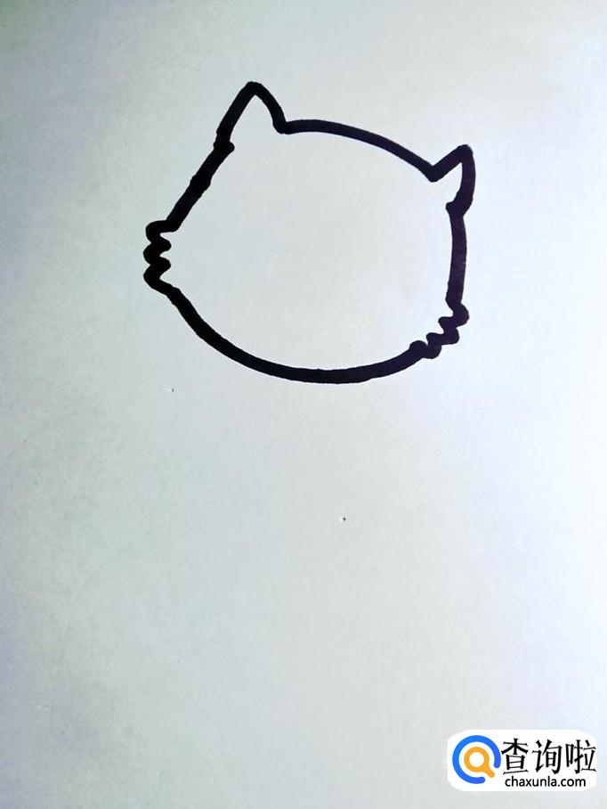 先画出松鼠的头。我们把松鼠的头画的向右侧歪一些,画出来的松鼠会更显得灵动活泼可爱。松鼠头中下部分的左右两侧对称的画出一小段锯齿形,这是松鼠鼓鼓的脸颊轮廓。
