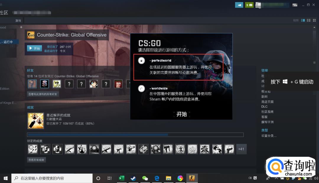 打开客户端STEAM,点击“Counter-Strike:Global Offensive”进入游戏,此时要选择-Perfectworld选项进入:
