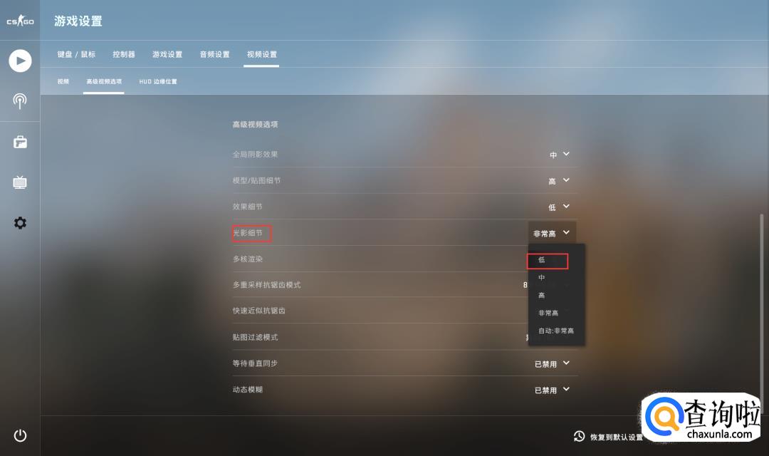 建议:根据你电脑配置而定,如果你FPS不高,将其关闭,如果你配置足够,可以调高。