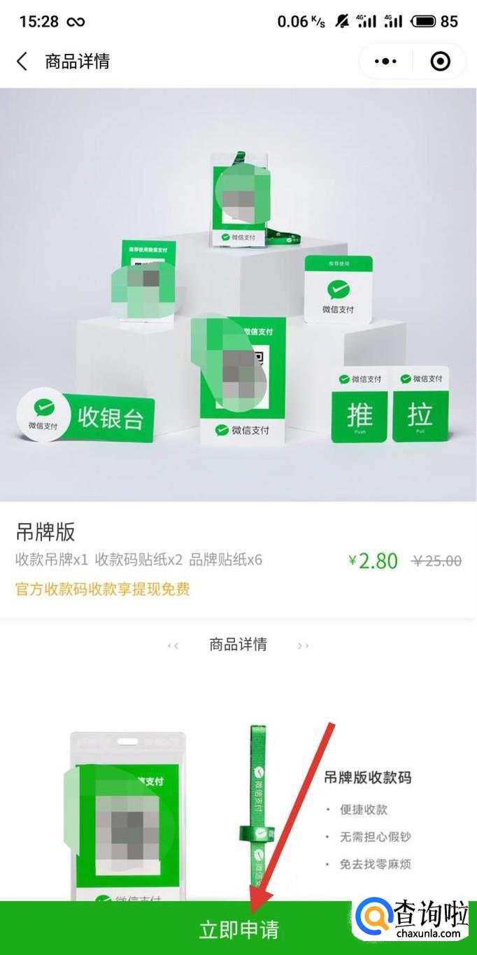 进入之后,确认申请该款收款码,点击“立即申请”,如图所示。