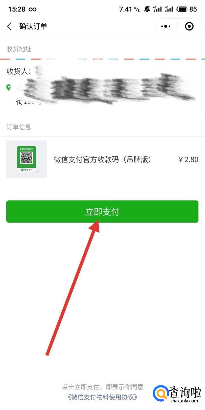 进去以后,输入收货人信息,点击“立即支付”完成付款。