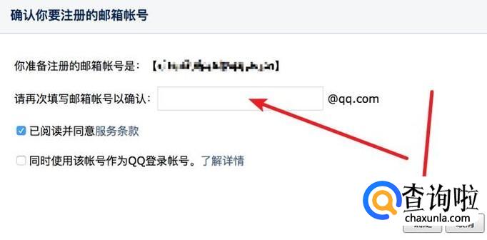 在这里,再次输入账号确认一下就可以了。点击‘确定’按钮后,我们就可以拥有一个英文的qq邮箱账号了。