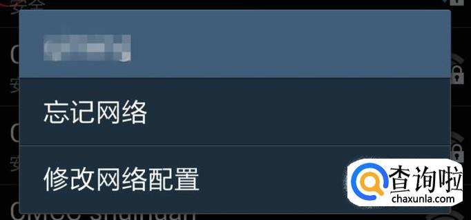 打开手机的WLAN设置,在你的无线网络上按住不放,几秒后会弹出一个对话框,点击“修改网络配置”。