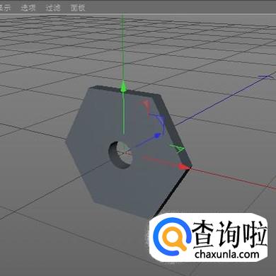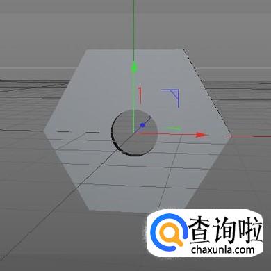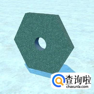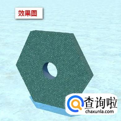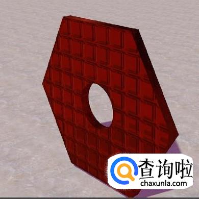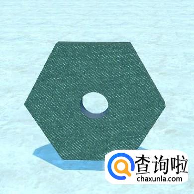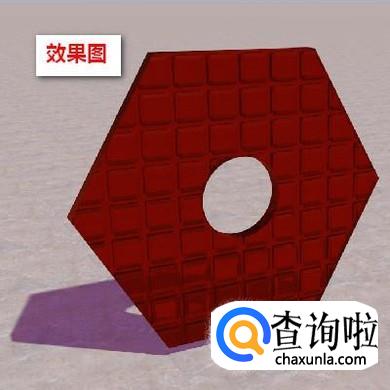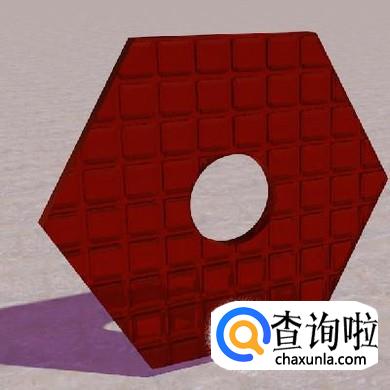 看视图这里,六边型中间穿个洞的效果已生成。给六边型添加材质,再添加地面对象和天空对象,再渲染看下效果。