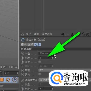 创建的多边不是六条边,鼠标选中多边对象,在多边对象面板中,把侧边的数值修改为6;那么,现在这个多边对象就是六边对象了。