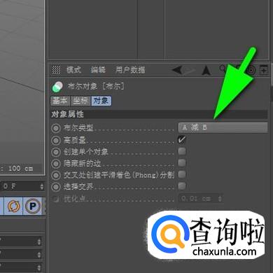 在对象管理器的面板这里,选中布尔;再看布尔的对象属性这里,把“布尔类型”设置为A减B模式。再看视图,圆柱不见了,而在圆柱的位置上呈现出一个洞。那么,这就实现了在六边型中间穿洞的效果。最后给六边型添加材质,添加地面和天空再渲染看下效果。