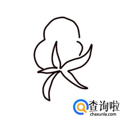 在花蒂的上面,画三条弧度大一些的弧线,表示一朵棉桃。