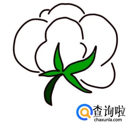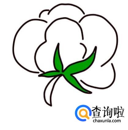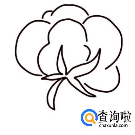 在棉桃的外面,再画五条长短不同的弧线,表示另外几朵棉桃,这样,棉花的线稿就画完了。