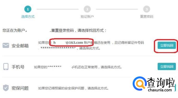 我们看到,我们只需输入邮箱、手机号、身份证号任意一个就能找回密码了,用邮箱找回密码的前提是注册时绑定了个人邮箱。我们输入邮箱试试。可以看到,只要邮箱还在正常使用,是可以找回密码的。点击“找回密码”。