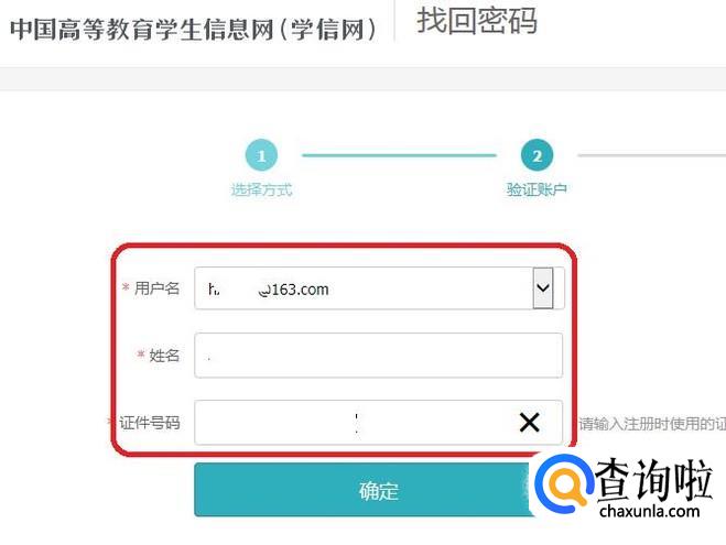 转到如下页面,需要输入姓名和身份证号,验证完成以后,系统就会往邮箱里面发送一条链接,点击进入邮箱就可以修改密码了。