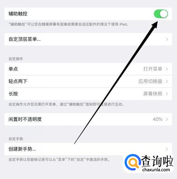 进入之后,点击“辅助触控”,进入下一页面,如图所示。