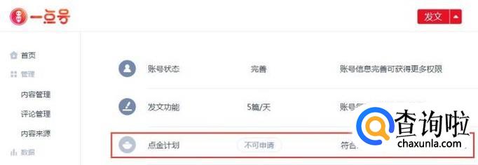 可以看到点金计划暂时不可申请开通,因为没有符合条件