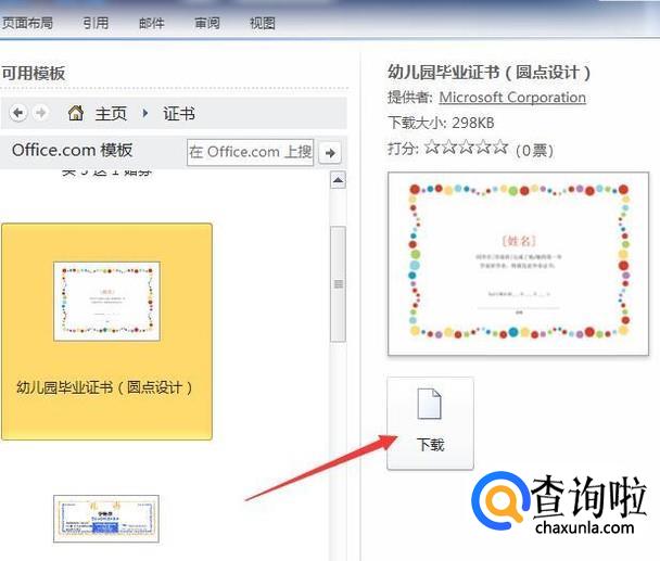 打开后,显示出各种证书样本,向下拉动滚动条,找到自己想要的证书样本,点击。