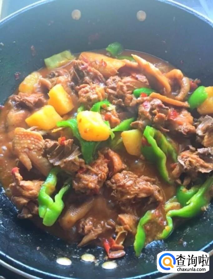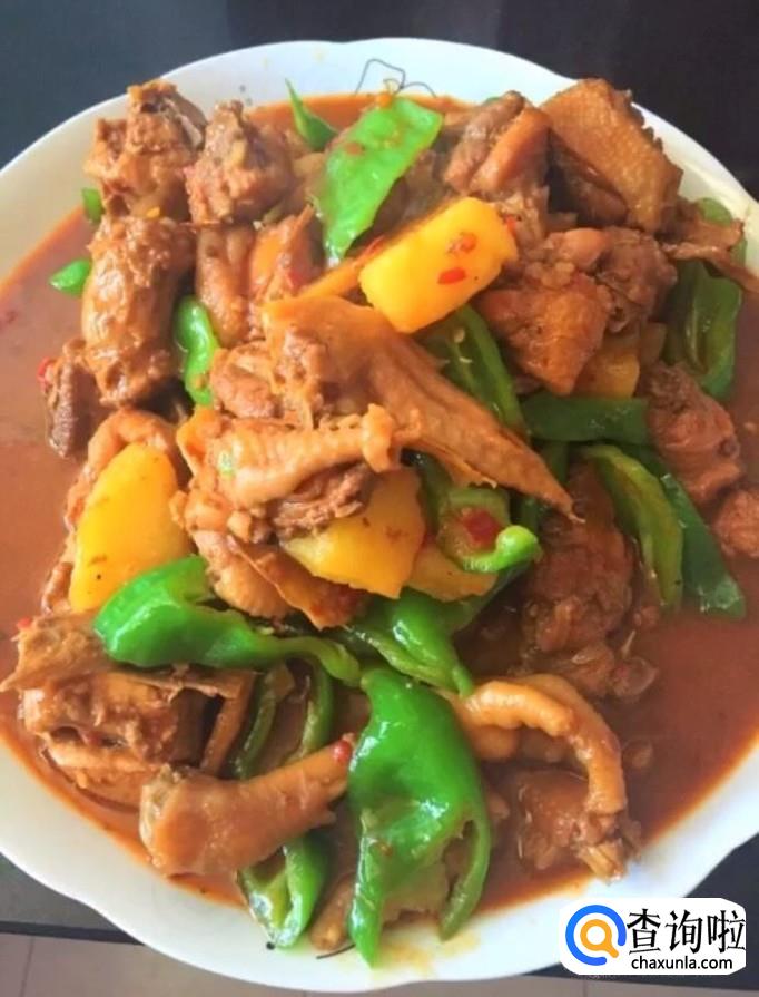 最后出锅装入盘中,美味的大盘鸡就制作完成啦!