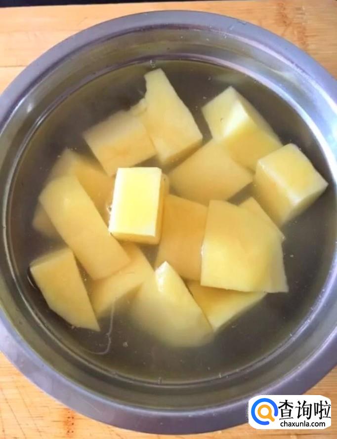 首先,我们将鸡洗净切块备用,准备姜片,蒜,干辣椒,花椒备用,土豆去皮切块放入水中备用