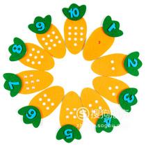 家长需配合每日为宝贝出30道10以内加减法,提升幼儿的算术能力,注意不要让孩子数指头,养成习惯不好改,培养心算能力。