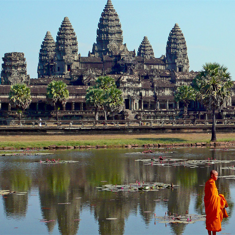 柬埔寨建国于公元1世纪下半叶,历经扶南、真腊、吴哥等时期。9世纪—14世纪吴哥王朝为鼎盛时期,国力强盛,文化发达,创造了举世闻名的吴哥文明,13世纪中叶起—1434年由于泰国的素可泰王朝入侵而衰落。