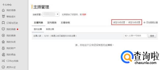 OW可在个人中心-我是OW-主播管理中“新签分成设置”和“续签分成设置”设置公会抽成比例。