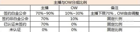 白金工会已签约的主播更改分成可以在每月25号后在个人中心-我是OW-主播管理中的“修改”项修改当前主播分成比例。主播将金元宝进行兑换时,公会将获得相应比例抽成。