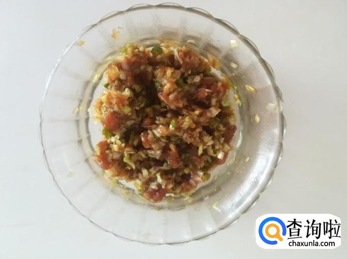 把白菜,葱,姜剁成碎末放入一个小碗里,加入肉泥,1勺盐,2勺味极鲜酱油,1勺蚝油搅拌均匀,制成馅饼肉馅。