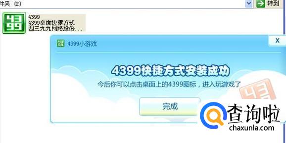 下载完成后找到安装文件,双击安装,马上就会完成并弹出一个提示框,点“完成”即可。桌面上就会出现4399小游戏图标了。