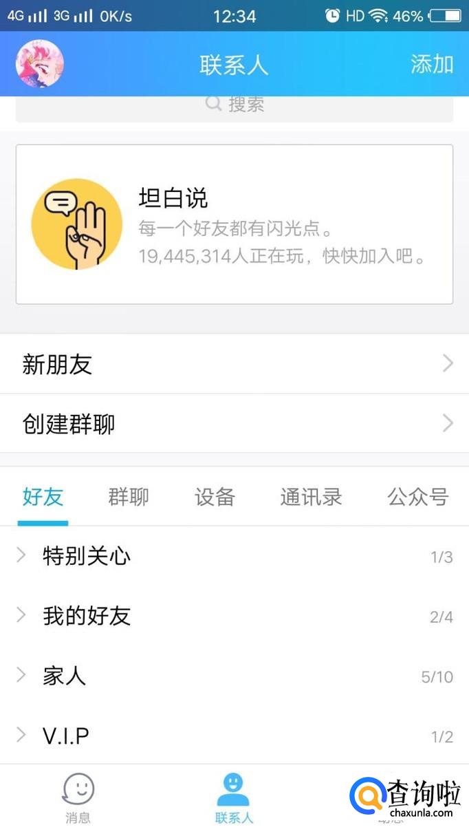 打开手机QQ,将好友设为“特别关心”。