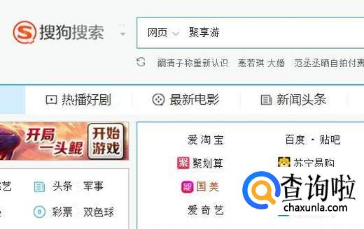 首先在搜狗浏览器中输入聚享游并点击回车键,如下图所示。