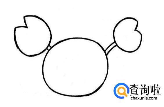 画一个大圆作为螃蟹的身体,两边画两个蟹钳就好了。