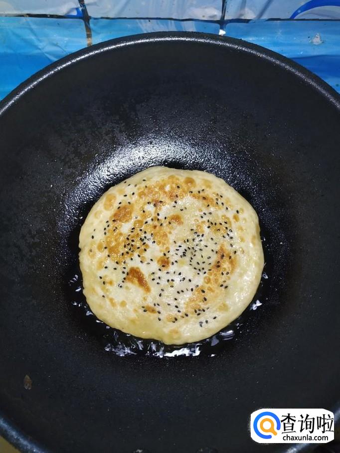 平底锅放入适量油,油热后将做好的面饼放入锅中,小火慢煎,煎至两面金黄。