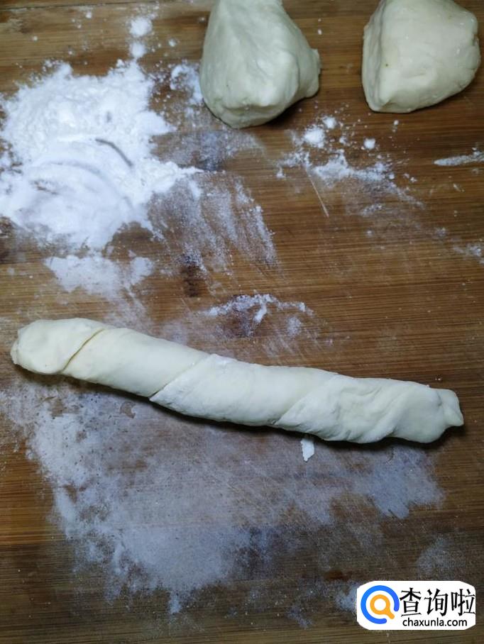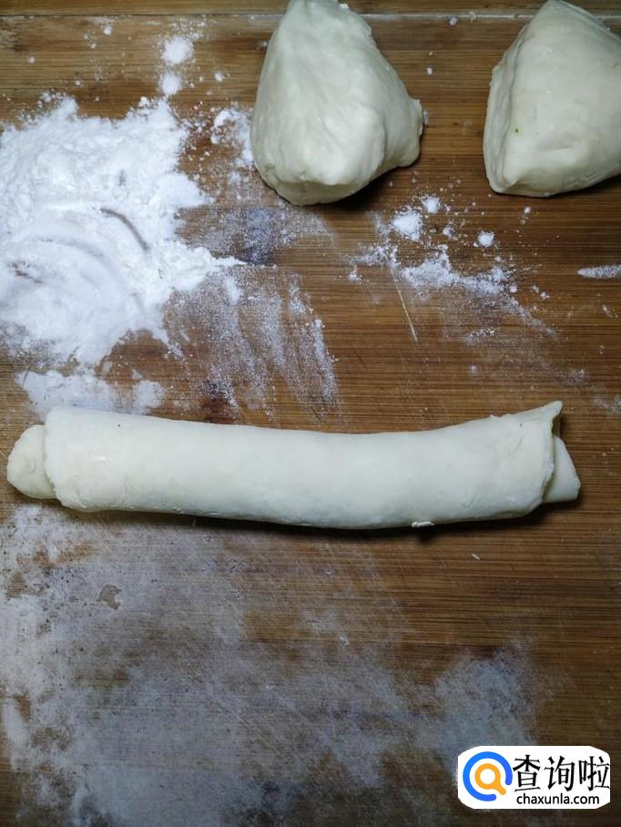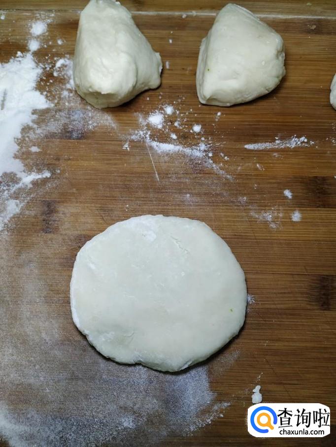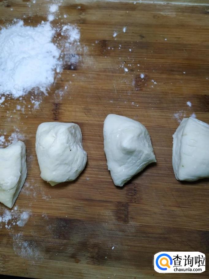 醒好之后,将面团分割成等大的面团,揉匀后,擀成薄皮。
