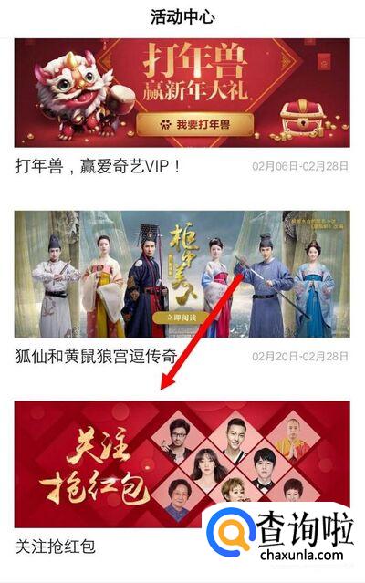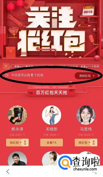 进入活动页面可以看到每个人每天只有6次抢红包的机会,使用完后只能第二天再参加!下面有很多的人可以让我们选择关注,点击人物头像下的抢红包就可以开始抢红包了!
