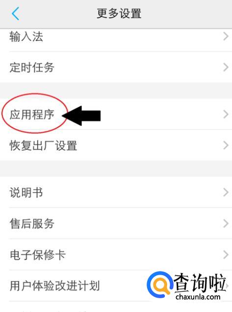 在“更多设置”界面中找到“应用程序”选项点击打开。