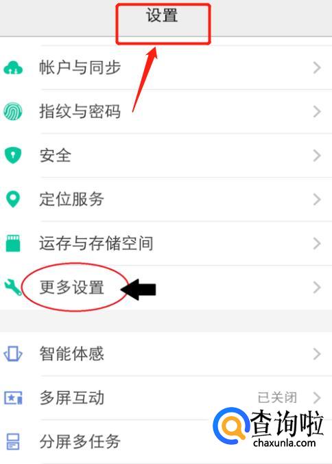 进入“设置”界面之后,点击下方的“更多设置”选项。